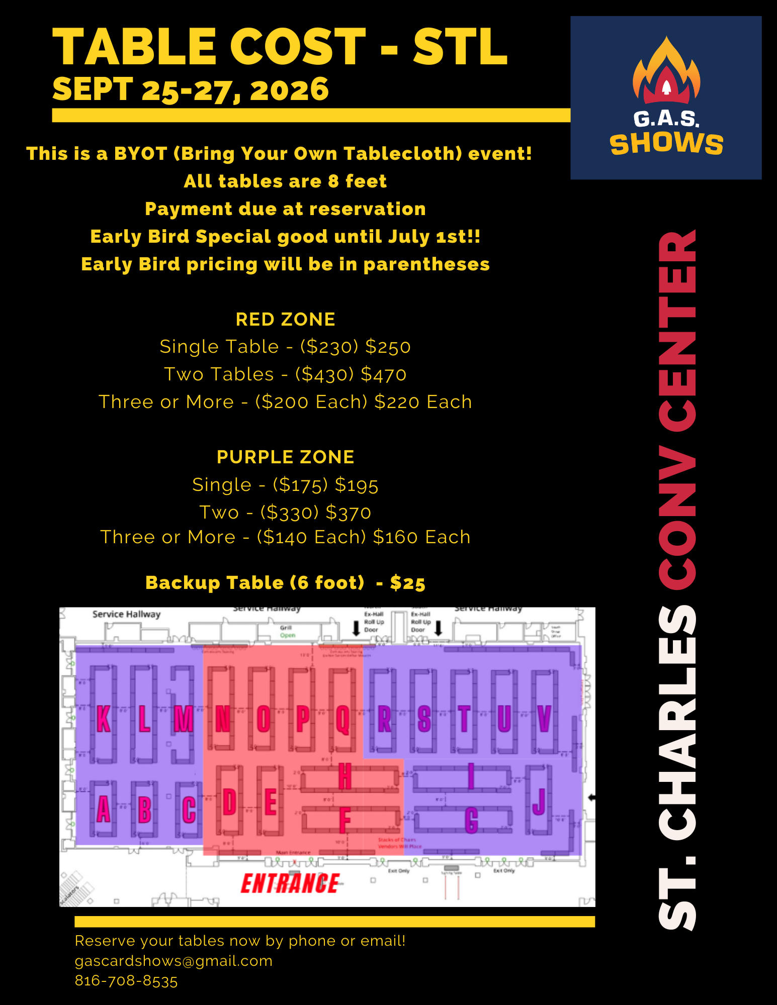 GAS Retail Show SeriesShawnee, KSDecember 2025250 Tables Each Weekend6/7, 13/14, 20/21 If you’re interested in reserving tables to any of our shows, please use the Contact page to get in touch. We also have a vendor group located HERE on Facebook that you can join for additional information! SOLD OUTJohn Knox PavilionLee’s Summit, MOJanuary 23 & 24, 2026 SOLD OUTMid-America CenterCouncil Bluffs, IAFebruary 20-22, 2026 SOLD OUTJohn Knox PavilionLee’s Summit, MOApril 11 & 12, 2026 St. Charles Convention CenterSt. Charles, MOMay 22, 23 & 24, 2026 OKC Convention CenterOklahoma City, OKJune 5, 6 & 7, 2026 Baird Convention CenterMilwaukee, WIJune 26-28, 2026 SOLD OUTJohn Knox PavilionLee’s Summit, MOAugust 8 & 9, 2026 St. Charles Convention CenterSt. Charles, MOSeptember 25, 26 & 27, 2026 John Knox PavilionLee’s Summit, MOOctober 17 & 18, 2026 Mid-America CenterCouncil Bluffs, IAOctober 23-25, 2026